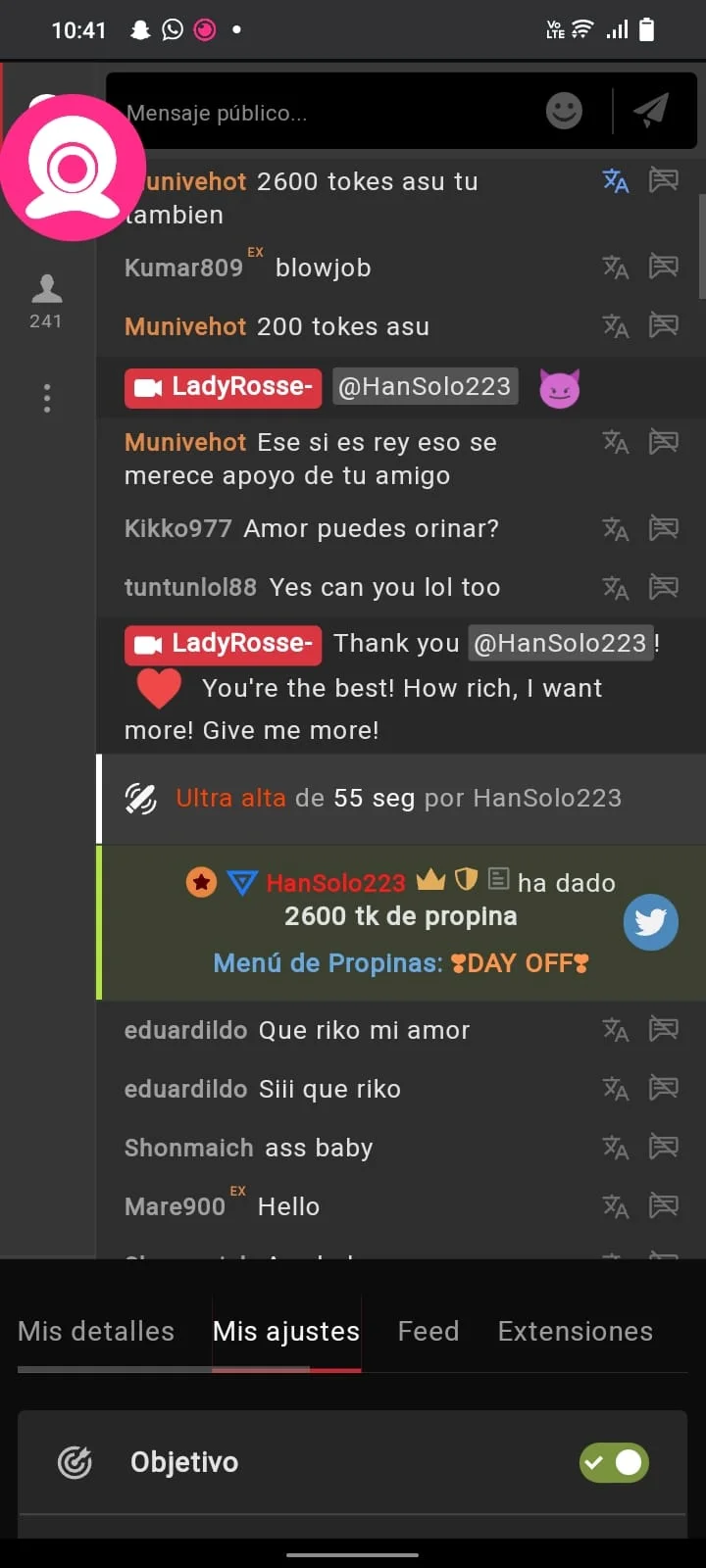 In this space come to enjoy and spend a very pleasant moment ... therefore respects what I do and the other members who are here do not use words that violate my integrity ... do not ask for show that affect my integrity as a person ... All requests you make are paid (check my TIP menu) in this room avoids spam or mention other models ...